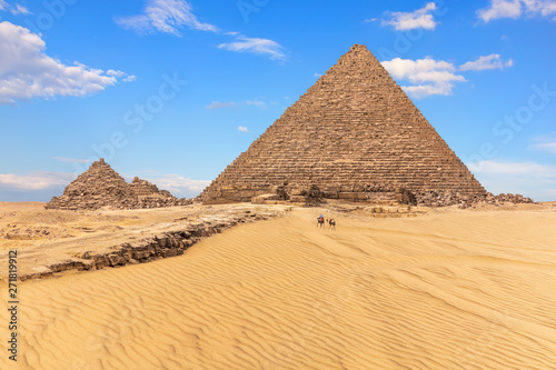 The Pyramid of Menkaure and the Pyramids of the Queens, sunny day view, Egypt