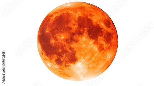 The Red Moon Isolated on White Background. Mysterious and Visual Art Concept.