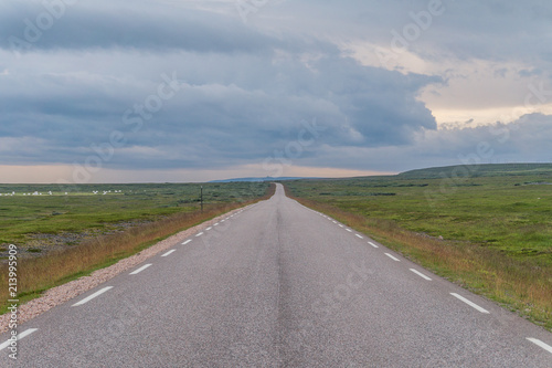 road, straight, horizon, green, blue, white, grass, sky, cloud, view, landscape, summer, beautiful, scenic, picturesque, north, tour tourism, holiday maker, route, journey, travel, leisure, activity, field, meadow, tundra, distance, car, transport, shipping, transportation, automotive, asphalt