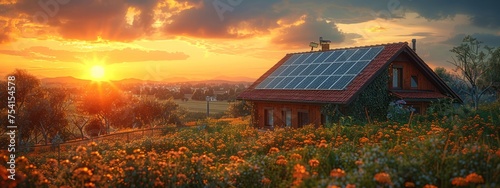 The roof and solar panels showcase sustainable energy and eco-friendly living.