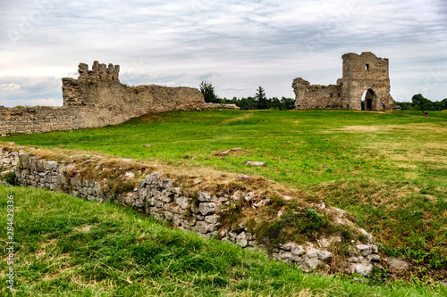 The ruins of the Kremenets castle on Mount Bona over town Kremenets , Ukraine. August 2019