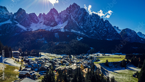 The Sappada valley among the Dolomites seen from above.