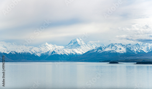 The scenery view of Mount Cook (Aoraki) the highest mountains in New Zealand view from lake Tekapo.