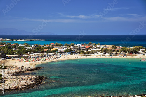 The sea and the beach from a bird's eye view in Stavros on the island of Crete