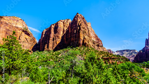 The Spearhead Peak in Zion National Park, Utah, USA, viewed from the Emerald Pools Trail