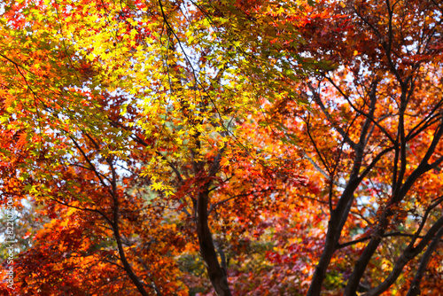 the spectacular scenery of maple trees with beautiful autumn leaves