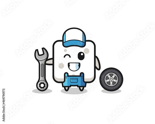 the sugar cube character as a mechanic mascot
