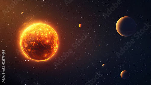 sun, 9, planet, system, clipping, path, included, foreground, object, stellar, illustration