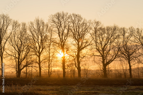 The sun through the trees at dawn