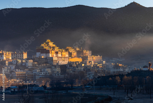 The sunrise view of Songzanlin Monastery in Shangri-La, Yunnan