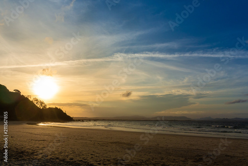 The sunset on the beach in Byron Bay, Australia