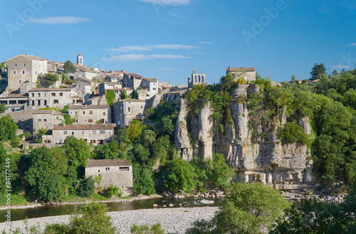 house, stone, rock, water, window, wall, roof, tile, landscape, architecture, mediaeval, tree, plant, slope, church, sky, cloud, nature, shore, chimney, city, river, france