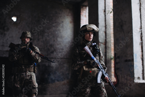 The Ukrainian military is defending its positions. Brothers in arms man and woman at war.