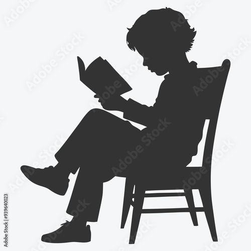 The Ultimate Silhouette Vector of a Child Sitting on a Chair Reading a Book