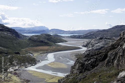 greenland, nordic, artic, vale, river, creek, mount, mountain, landscape, sea, water, sky, mouth, nature, trek, trekking, hiking, coast, shore