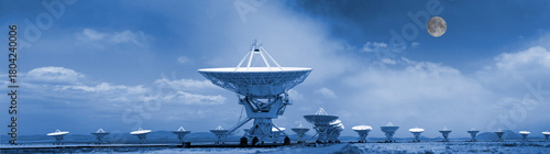 radio, telescope, astronomy, space, exploration, night, cloud, dish, antennae, research, land of enchantment, seti, search, extraterrestrial, intelligence, alien, moon