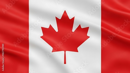 The vibrant red and white flag of canada, featuring the iconic maple leaf, gently waves in the breeze, symbolizing national pride and identity