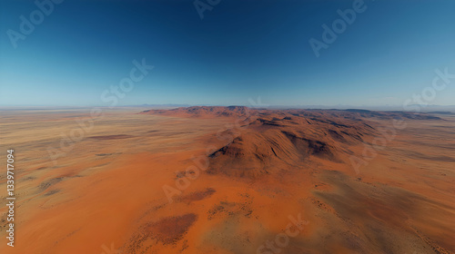 The vibrant red sands of Simpson Desert under a cloudless sky, with wind-sculpted dunes stretching into the distance