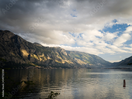 The view of the Kotor Bay at sunset. Montenegro autumn 2019
