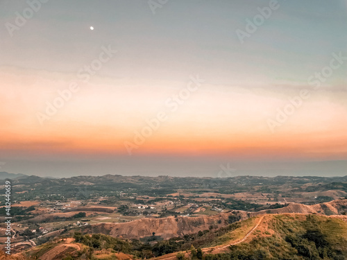 sunset, sky, landscape, nature, sun, cloud, sunrise, mountain, cloud, view, evening, city, orange, light, sunlight, horizon, mountain, dusk, sea, summer, morning, hill, beauty, panorama, dawn