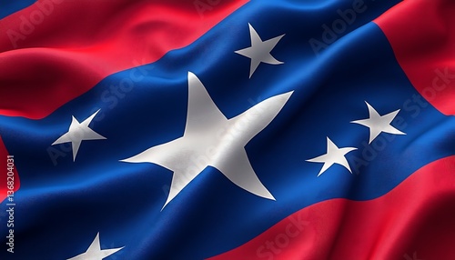 flag, textile, star, blue, red, white, waving, fabric, symbol, clothes, pattern, design, background, texture, detail, motion, movement, abstract, surface, fold, drape, shiny, illustration, close, up, light, colours, vibrant, patriotic, national, emblem, banner, fluttering, glossy, smooth, bright, satin, soft, graphic, representation, composition, dynamic, ripple, element, corner, angled