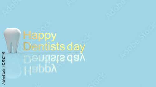 The white tooth and gold text for happy dentist day 3d rendering
