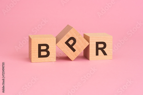 the word BPR - Business Process Reengineering, on wooden cubes, on a pink background