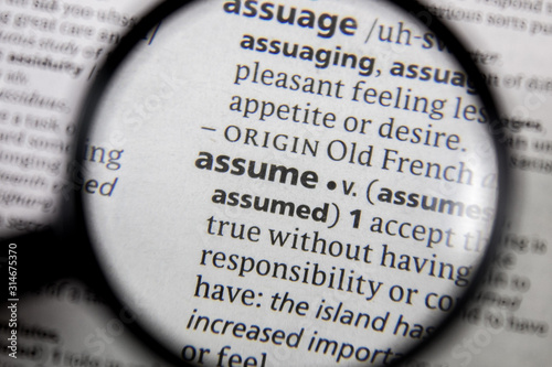 The word or phrase assume in a dictionary.