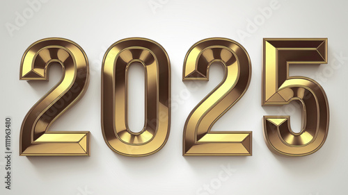 The Year 2025 Represented in Bold, Golden Numerals Against a White Background - Metallic Numbers, Reflective Light, Vertical Sequence, Modern Design, Futuristic Year, Elegant Typography, New Year