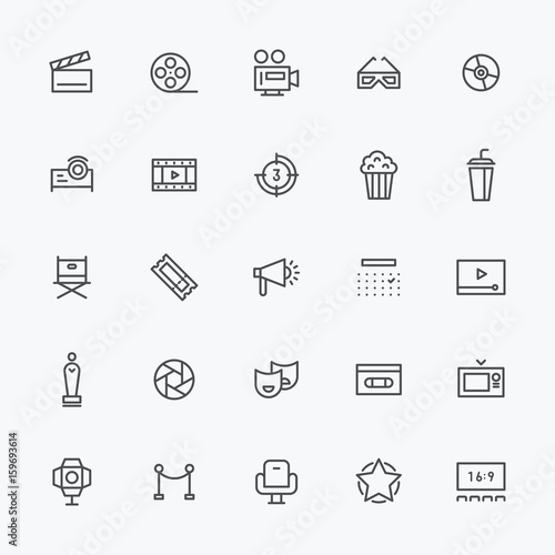 icon, theatre, motion picture, ticket, film, set, television, video, line, outline, vector, isolated, object
