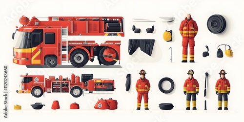 Theme: Fire Department, Icon Set, Shapes, Objects, Colorful, on White Background, Abstract Image, Texture, Pattern Background, Wallpaper, Cover and Screen of Smartphone, PC, Laptop, 9:16 and 16:9 Form