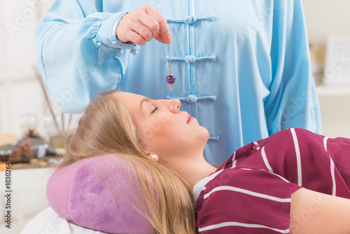 woman, patient, two people, mystic, mystical, mysticism, metaphysical, bioenergy, practice, measuring, spiritual, prophecy, psychology, traditional, magical, esoteric, alternative, astrological, hypnosis, hypnotic, hypnotist, pendulum, people, meditation, female, mature, medicals, practitioner, relaxed, treatment, calmness, therapy, crystal, chakra, healer, healing, energy, beautiful