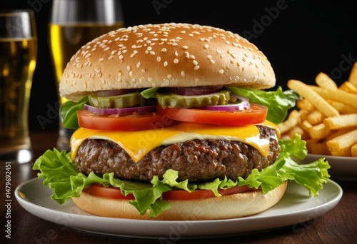 hamburger, burger, food, cheese, cheeseburger, beef, sandwich, bun, bread, meat, isolated, lettuce, fast, meal, tomatoes, white, lunch, fat, onion, sesame, snack, fast food, delicious, unhealthy, tasty