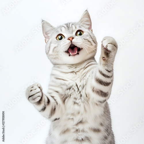 there is a cat that is standing up with its paws up