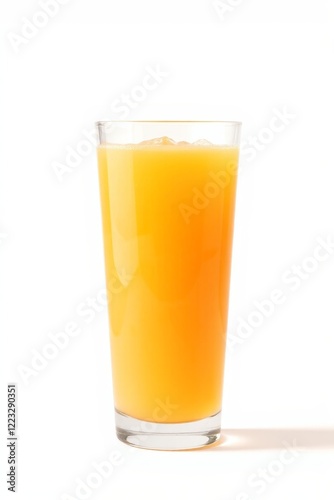 there is a glass of orange juice on a white surface