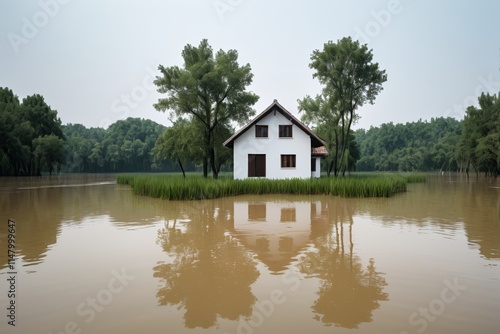 there is a small house in the middle of a flooded area