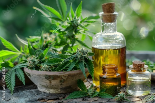 There is marijuana and hemp oil on the table
