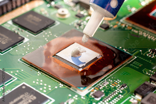 Thermal grease on a processor on a computer motherboard