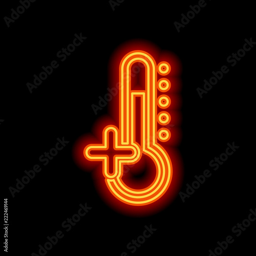 Thermometer, hot. above zero temperature. Orange neon style on b
