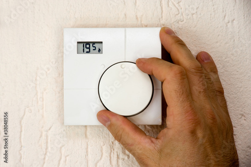 thermostat, room, heating, energy, climate, conservation, control, hand, heat, cooling, degree, dial, fahrenheit, indoor, saving, set, setting, temperature, turn, activate, adjust, air, buttons, conditioning, electronic, panel, regulation, regulator, warming, twisting