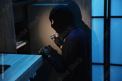 danger, gold, taking, thief, scene, storage, safety, wealth, rich, business, risk, dangerous, protection, valuable, steal, stealing, burglary, burglar, gangster, criminal, illegal, thieving, breaking, security, night, dark, flashlight, invasion, bar, expensive, gold, balaclava, mask, caucasian, man, male, person, adult, robber, robbery, crime, apartment, room, home, indoor, house, safe, steel, background