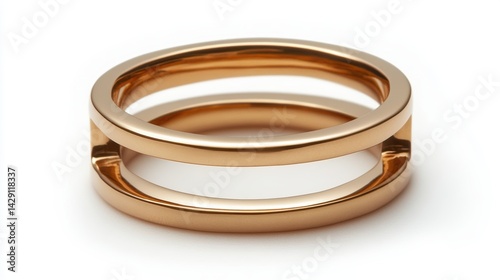 Thin double band ring in rose gold with open center, isolated on white background