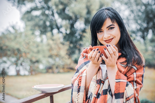 Thinking concept, lady dreaming about something. Young girl enjoying the beauty of nice autumn day in outdoor