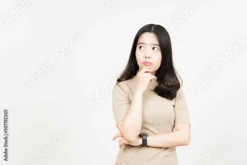 Thinking Gesture Of Beautiful Asian Woman Isolated On White Background