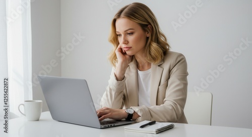 laptop, business, office, woman, computer, people, smile, corporate, caucasian, casual attire, notebook, work, brunette, businesswoman, woman, thought, sweater, men at work, sitting, professional occupation, person, workplace, thinking, 40s, secretary, mature, attractive, middle-aged, beautiful, looking, assistant, confident, female, home, looking away, contemplation, desk, executive, businessperson, lady