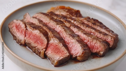 Thinly sliced Wagyu beef for Japanese yakiniku, neatly arranged on a ceramic plate, with clean, elegant styling.