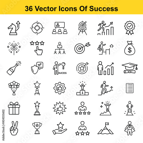 Thirty Six Line Icons Representing Achievement and Success