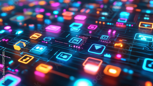 This 3D illustration highlights the significance of modern technology in the business landscape, with a focus on the abbreviation "APPS." The design showcases a vibrant and dynamic environment filled