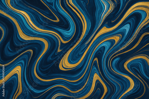 This abstract image features swirling patterns in deep blue and gold tones, creating a sense of fluidity and movement. Perfect for backgrounds, designs, and artistic projects.