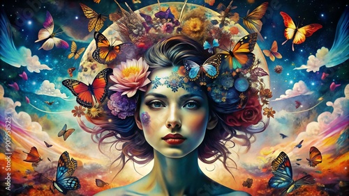 surreal, portrait, butterfly, woman, pop, art, collage, abstract, photo, female, style, whimsical, surrealism, hair, metamorphosis, dreamlike, captivating, vibrant, colours, creative, project, background, website, banner, presentation, slide, social, media, post, free, download, customizable, template, artistic, photo, fantasy, artwork, culture, digital, manipulation, fashion, self-portrait, expression, empowerment, illustration